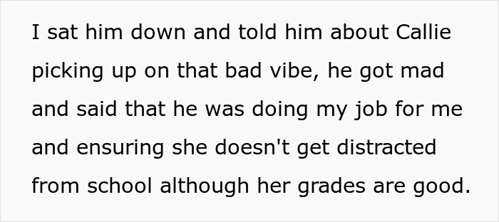 It was such a regular occurrence that the OP had to sit down with her husband and talk about his attitude. The man got angry and thought that he was the only parent being reasonable and trying to control Callie when she was getting distracted from school.
